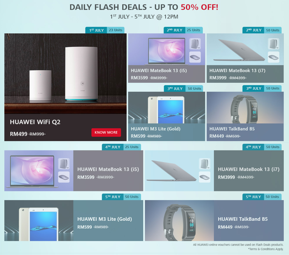 至于高达50%的折扣就是今天12pm即将被大家抢购的HUAWEI WIFI Q2 (RM499,原价RM999)