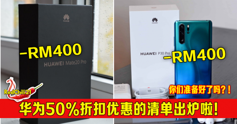 华为终于公布了折扣优惠清单,果然不出所料Huawei P30 Pro和Huawei P30在这次的促销当中双双折扣了RM400和附上价值RM760的赠品。