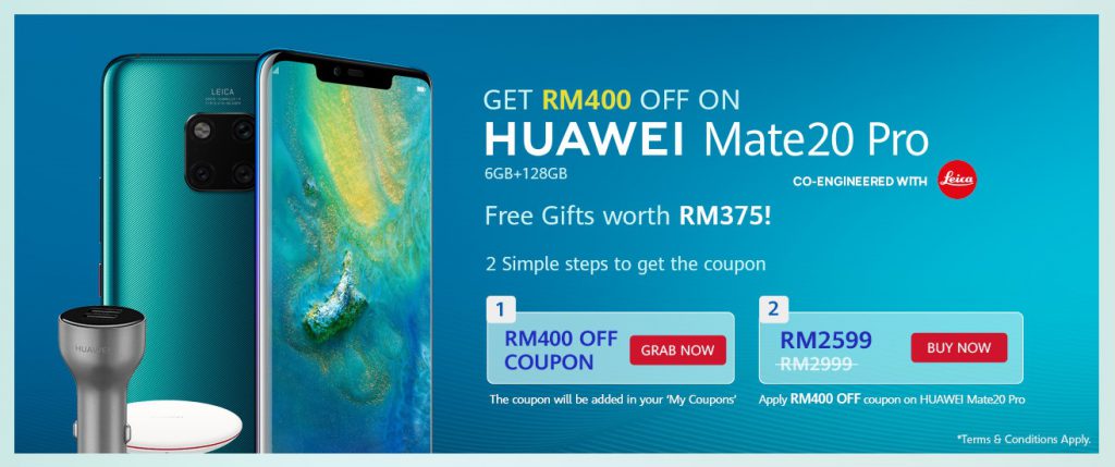 3)Huawei Mate 20 Pro (128GB):RM2599 附上RM375的赠品。
