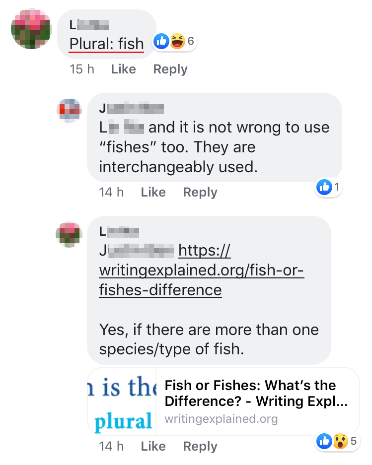 ▼当大家还在争议着是否是好的方案,这里出现了“英语狂人”纠正了帖主应该用“fish”而不是“fishes”。