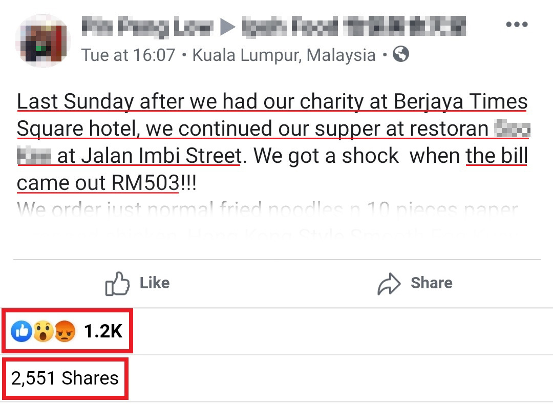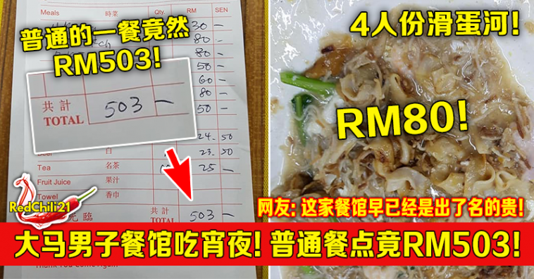 在大马的餐厅吃一餐宵夜价值RM503,你相信吗?近日有一名大马网友就PO文抱怨,简单吃一餐宵夜,结果价格让他吓很大!