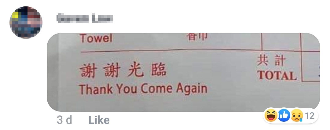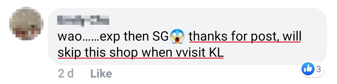 于是他们就询问价格这么贵的原因,没想到他们得到的回复是:「Uncle,你很久没有来了啦!这是一般的价格而已!我可以给你账单,如果你要PO在面子书也是OK的!」