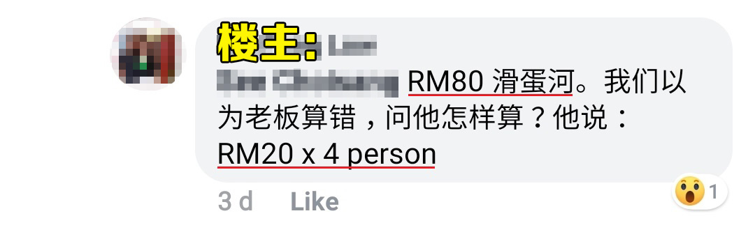 ▼ RM80的滑蛋河,老板解释是1人RM20,所以4人份就是RM80!