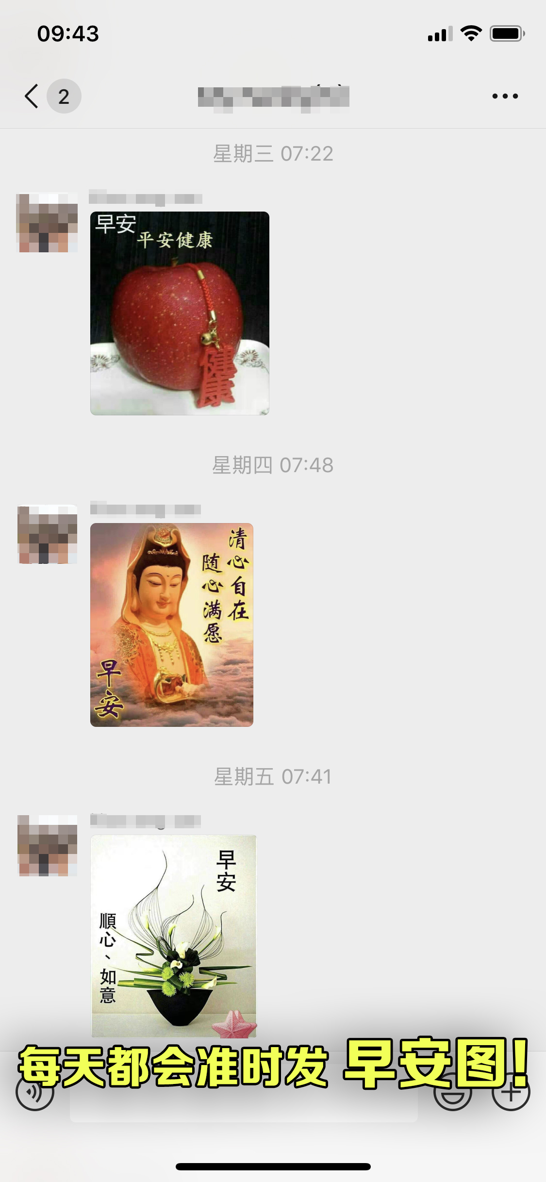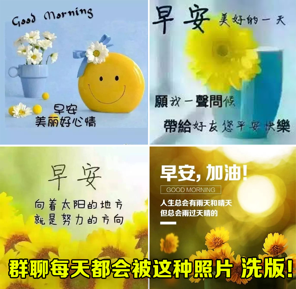 多数aunty uncle都很喜欢每天发早安图跟你说早安,不然就把早安图发到他所有的群聊里!一天之内可以收集到许多许多许多的早安图!反正就是,还没睡醒就被这个信息给吵醒了!