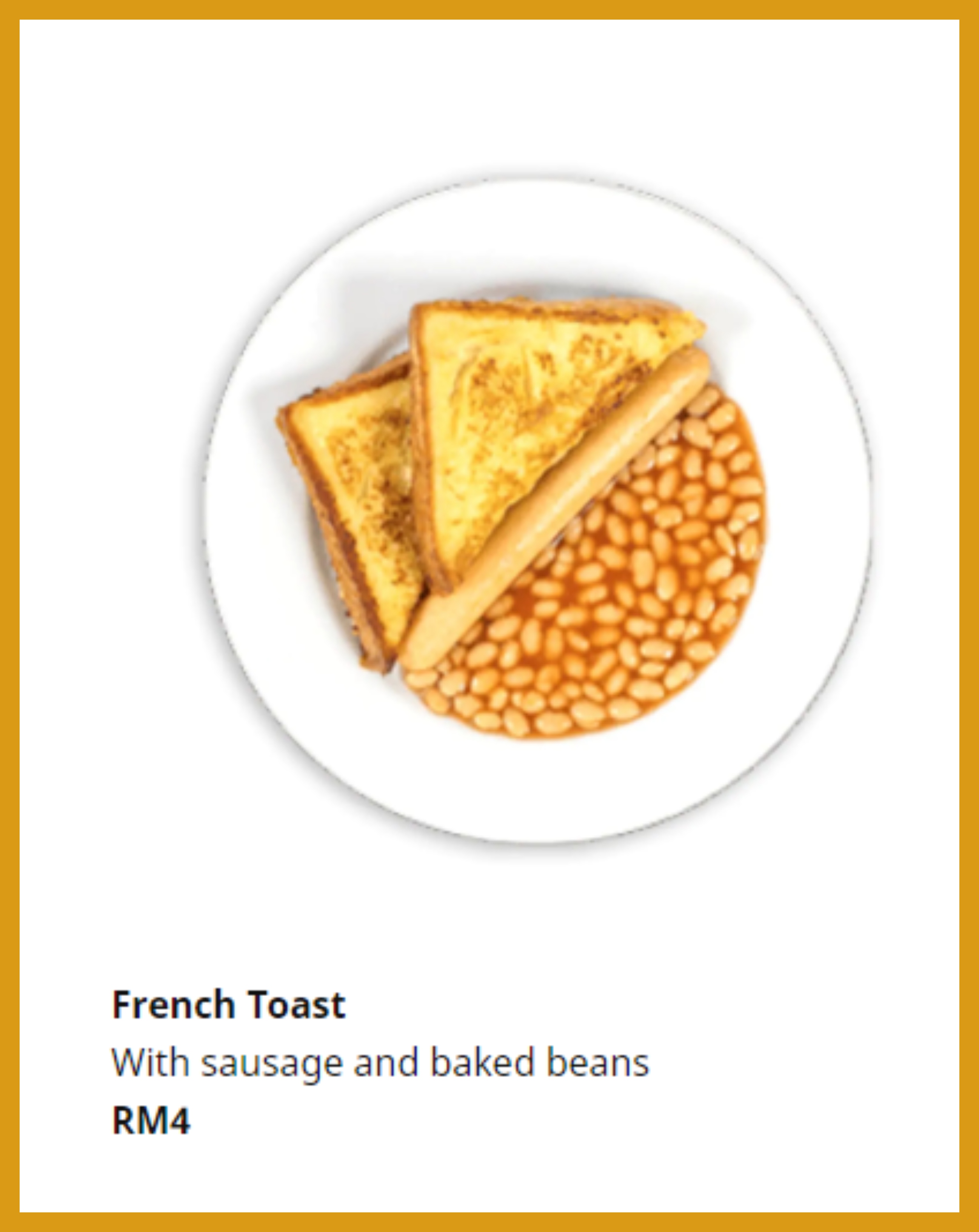 或者是早餐来个法式吐司+ 香肠+黄豆,也只需要RM 4!