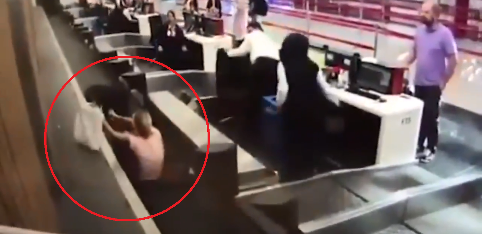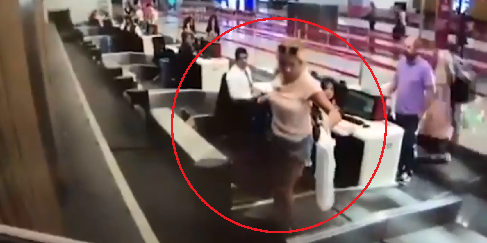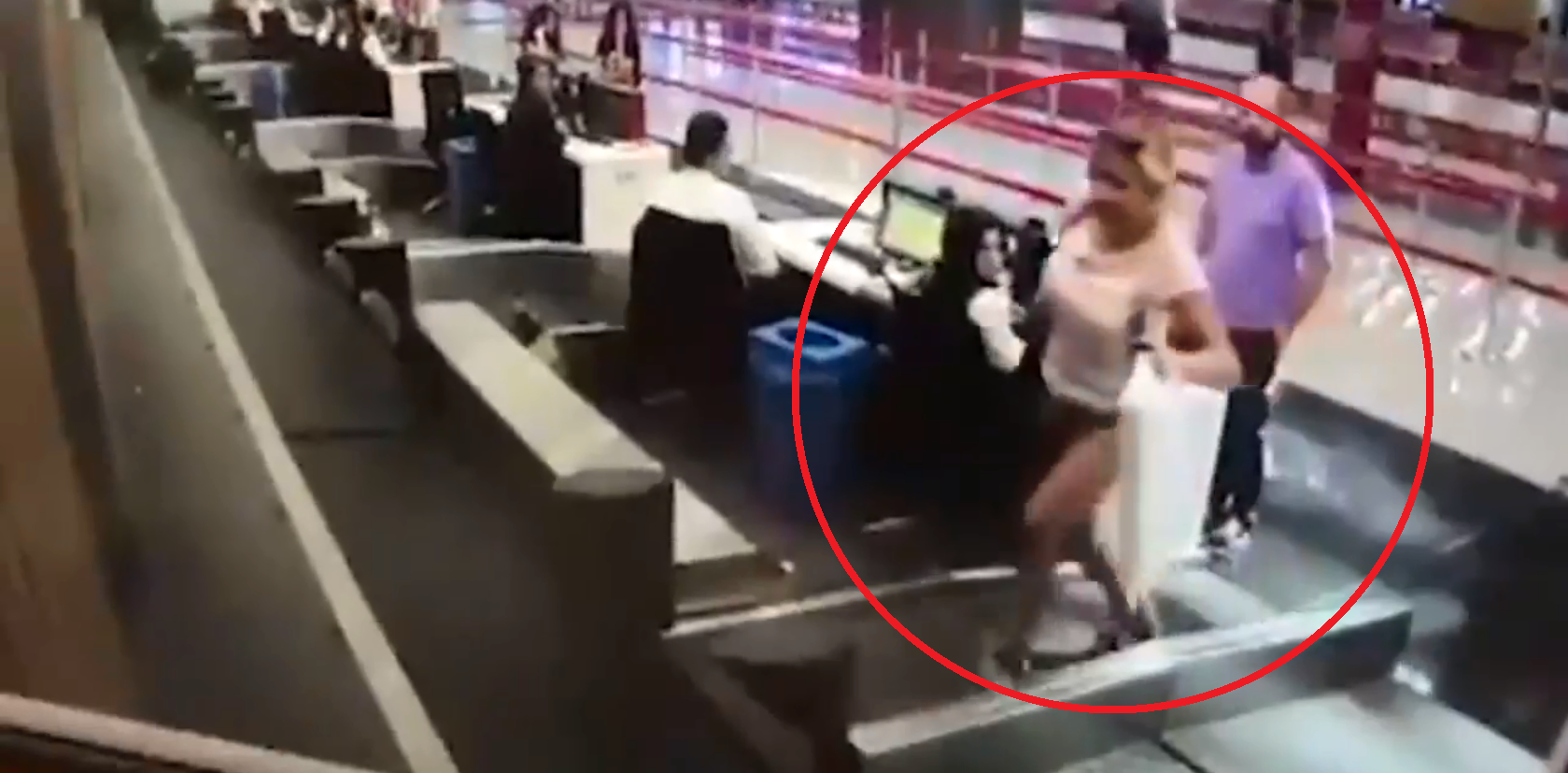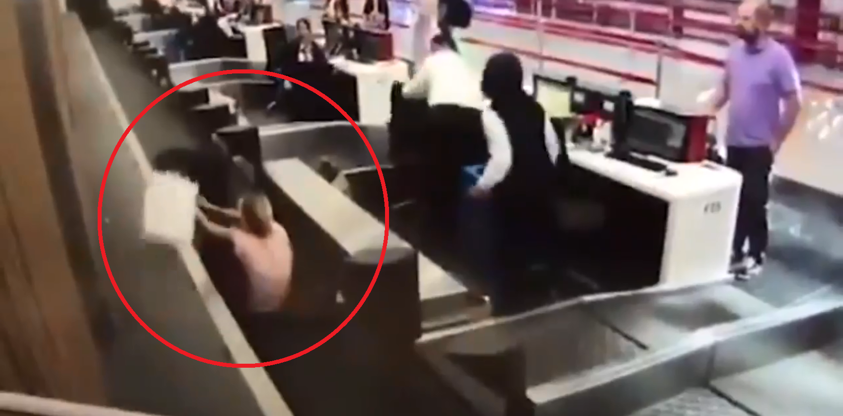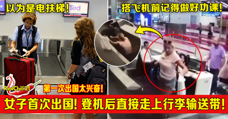 女子就直接踩上行李输送带,让现场的地勤、乘客都看傻眼了!