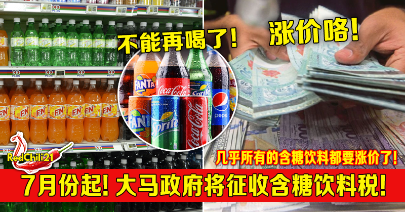 政府从7月起每公升的含糖饮料都会被征收40 sen含糖饮料税!因此这些汽水的售价会调涨10仙至20仙!