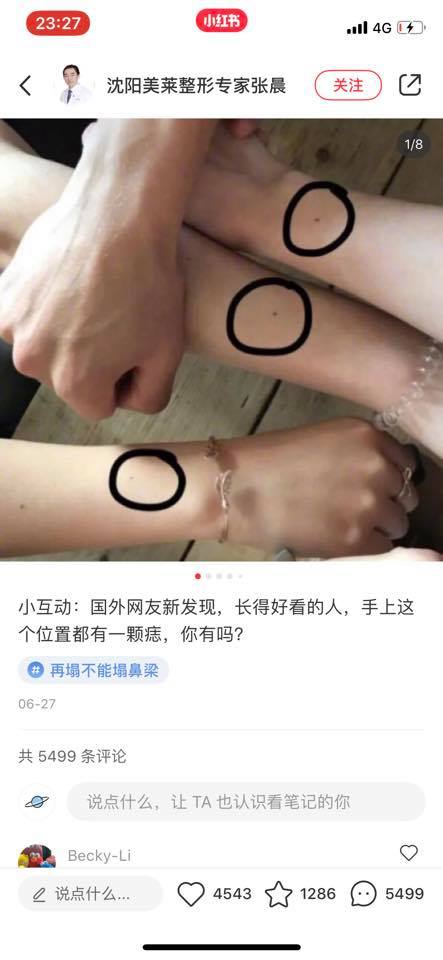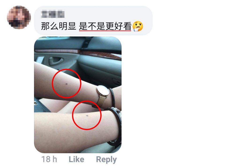 ▼ 网友抱怨:明明自己也有痣在手臂中间,但为什么还是不好看?