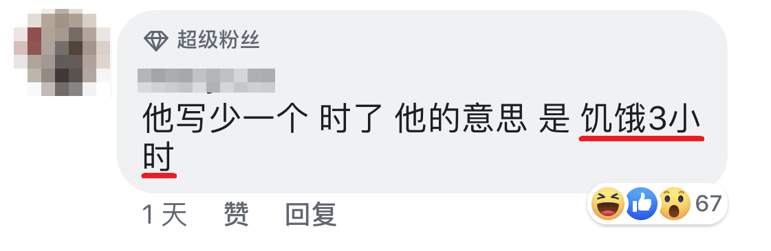 有网友调侃表示「是少写了一个时,应该是饥饿3小时」