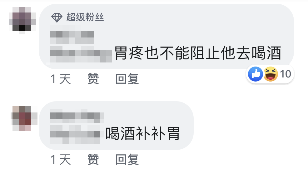 ▼网友调侃:「胃痛也不能阻止他去喝酒」「喝酒来补补胃」