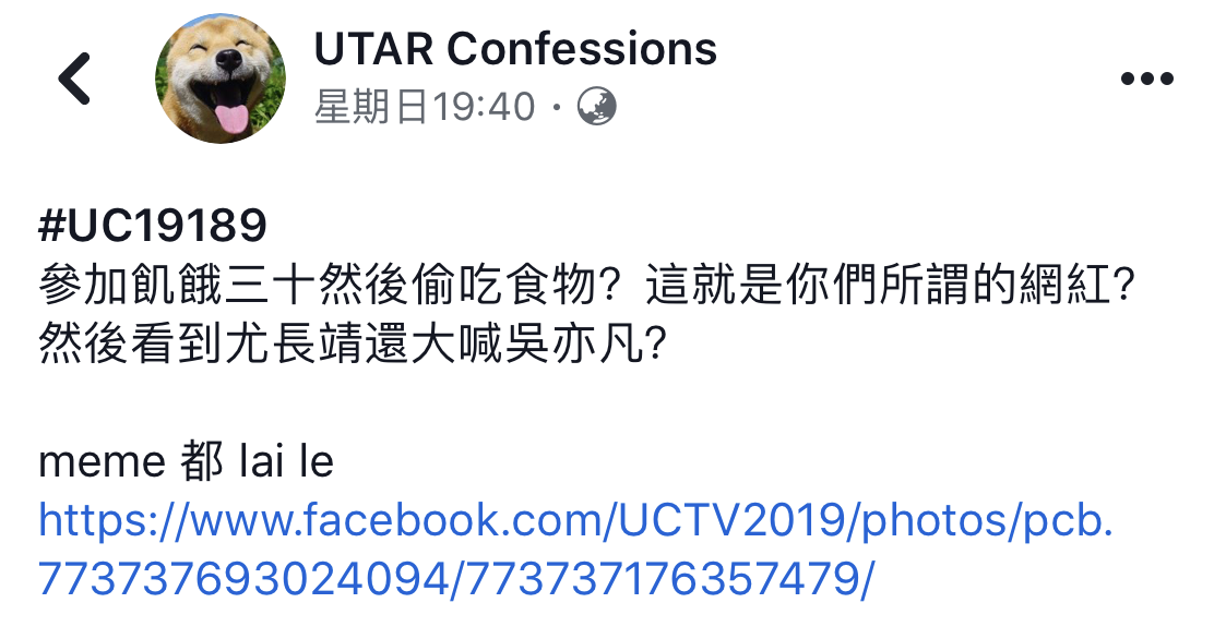 该名网友在面子书专业「UTAR Confessions」上揭露这一恶劣行为并对此表示非常愤怒!