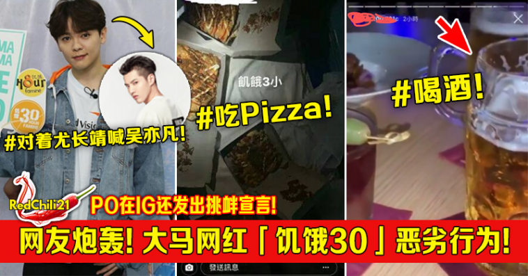 今年的“饥饿30”活动正落在本月的20 – 21号,也就是前两天,眼看已经圆满结束,却有一名网友在网上愤怒揭露,参加该活动的一名网红在活动过程中不仅没有禁食,还将食物的图片po上网!