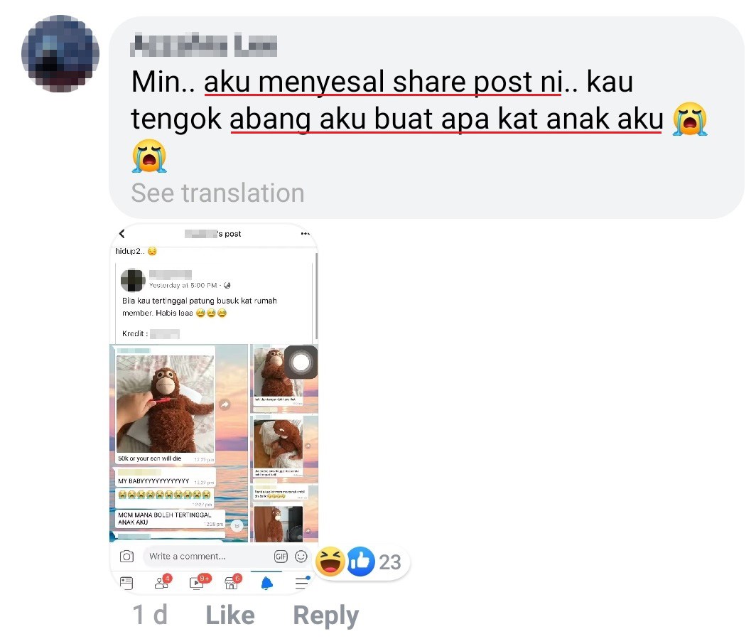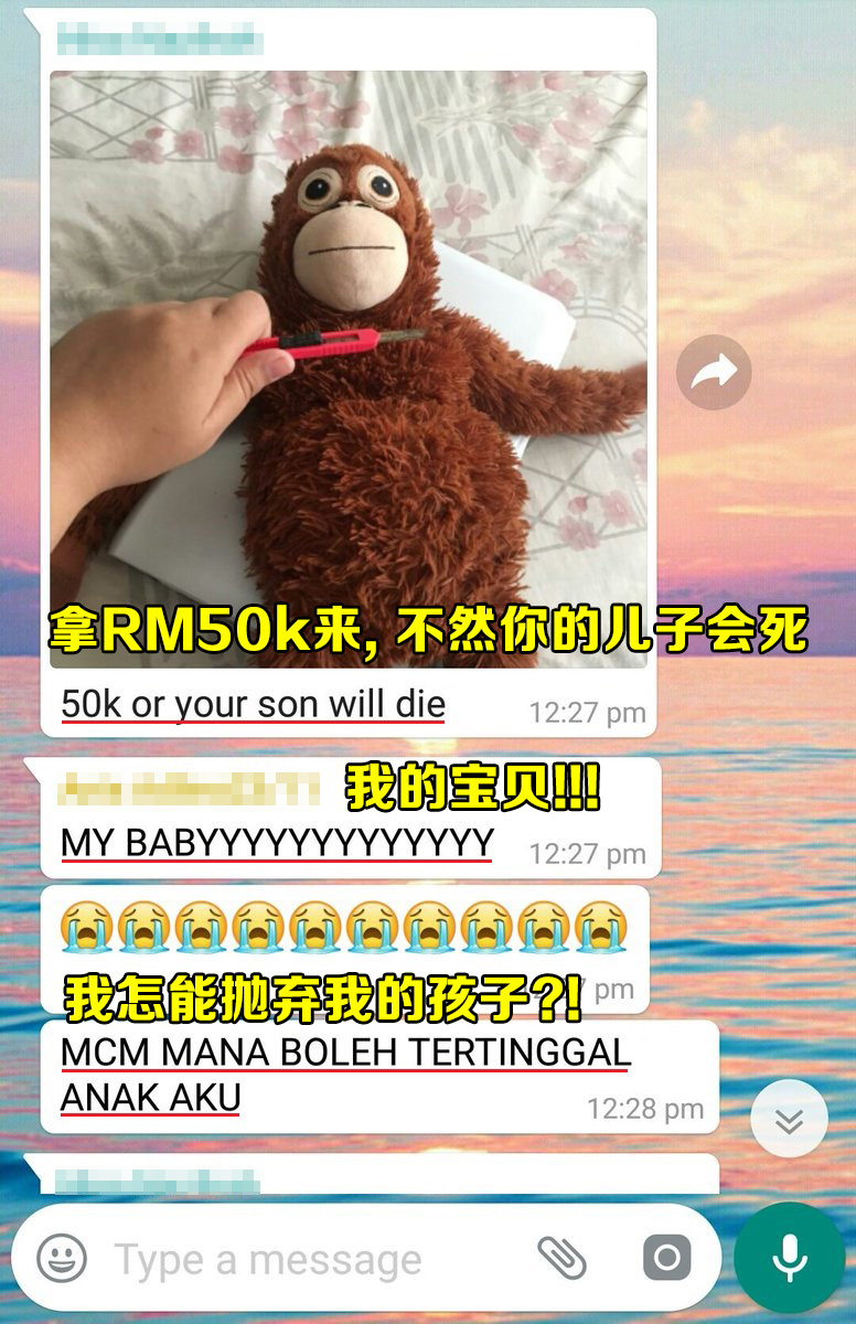 ▼ “儿子”的妈实在没有 RM50k ,就请 “绑匪” 给多一点时间。结果 “绑匪” 不耐烦,撕票了!