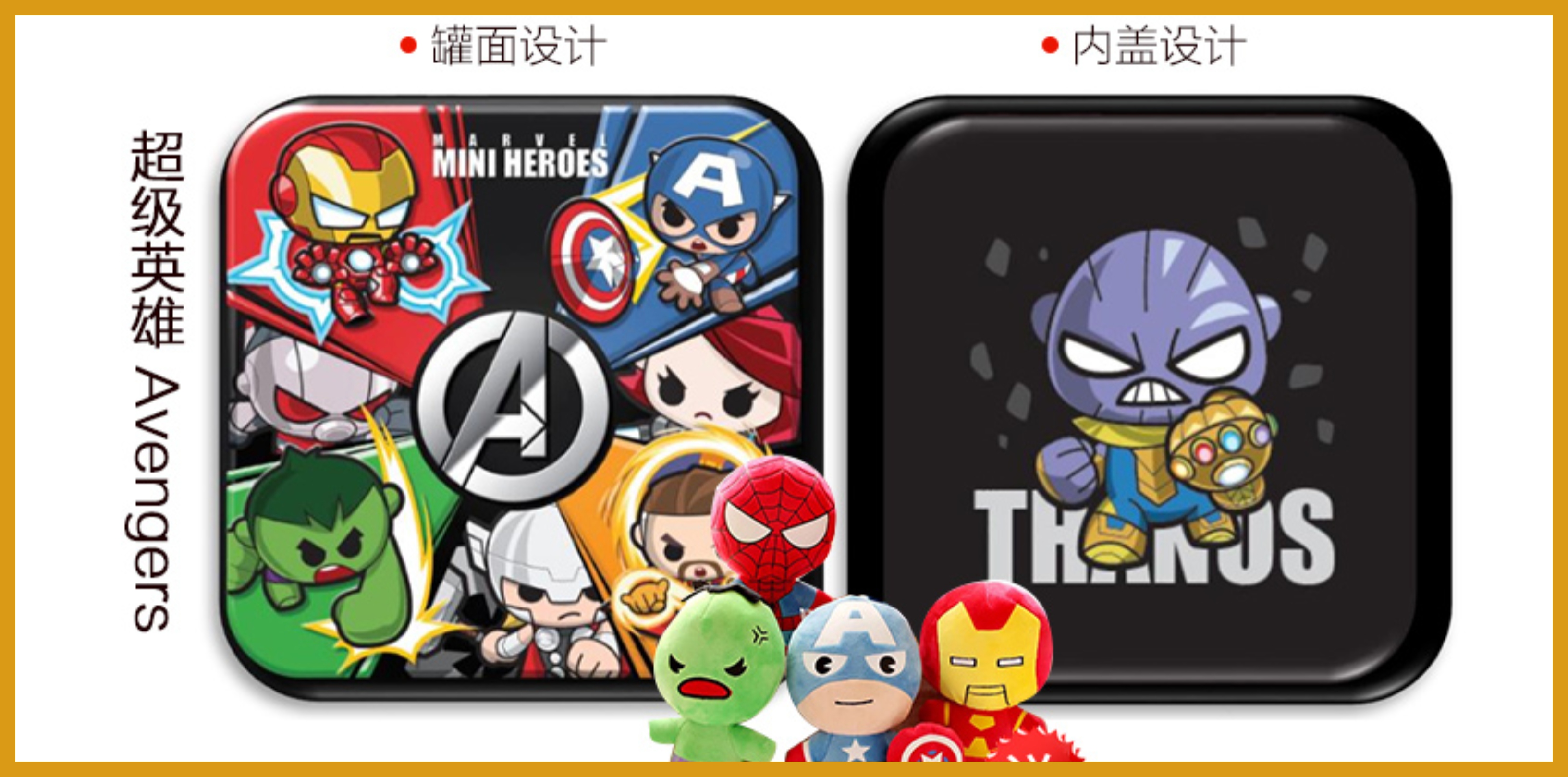 而今年没心月饼与Marvel联手所推出的就是四月份中引起热议的复仇者联盟主题!这次的设计可以说是别出心裁,也以往不一样,多了一点小心思哦~