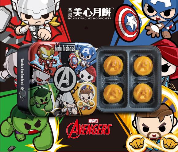 两款礼盒里分别都装有4个美心月饼的王牌——流心奶黄月饼!上面还细心地放出A代表Avengers的设计!