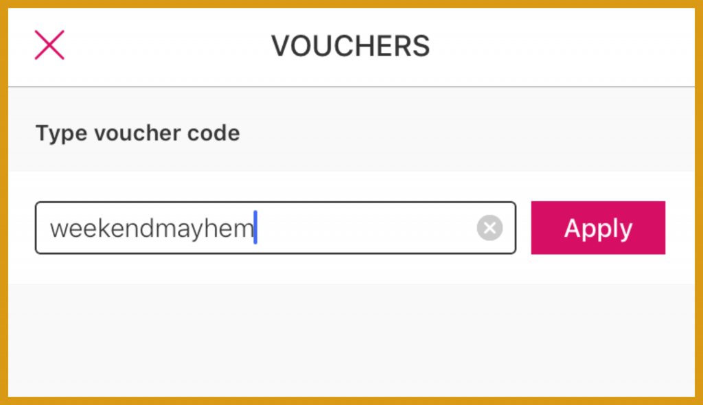 ▼Step 4:重点来啦!输入 【weekendmayhem】这个优惠码!
