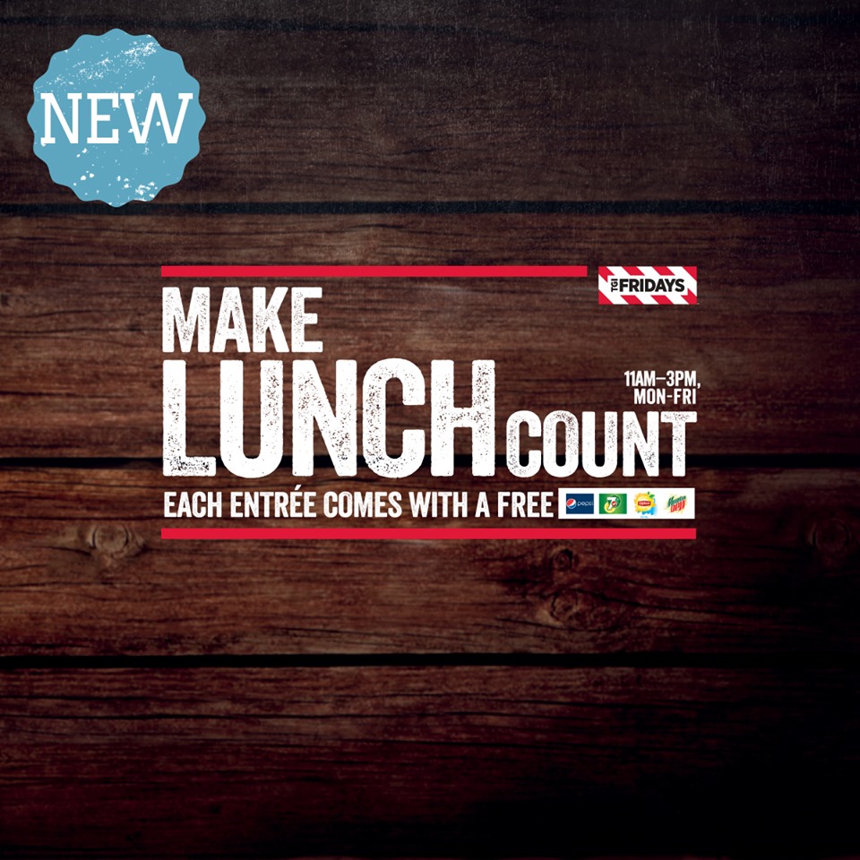 促销活动:TGI Friday新午餐菜单免费饮料!