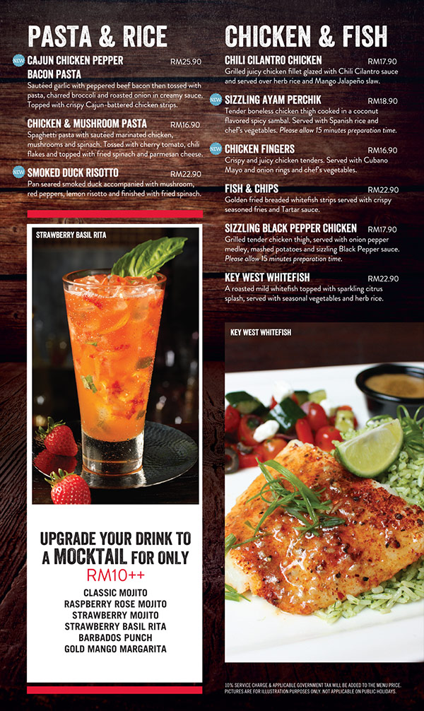 如果你是其中一位寿星的话,你只需出示身份证就能免费享用Cubano Chicken Sandwich/ Garlic Shrimp & Bacon Pasta/ Key West Fish。