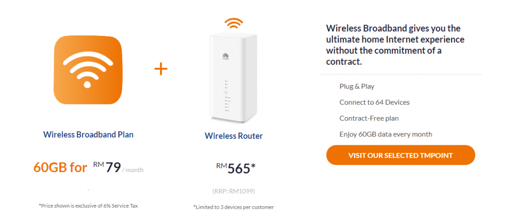 - 免费华为B618-65D LTE设备(市价: RM1099但需签购24个月)