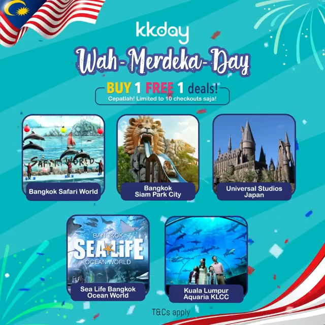 为了配合大马国庆日的来临,KKday旅行社推出了超多游玩的门票如Legoland,Sunway Lagoon Theme Park,Universal Studios Singapore等统统都有买一送一大优惠哦!