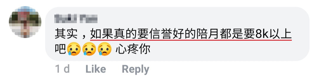 ▼ 有网友说:通常好的月子中心都要RM8,000以上。