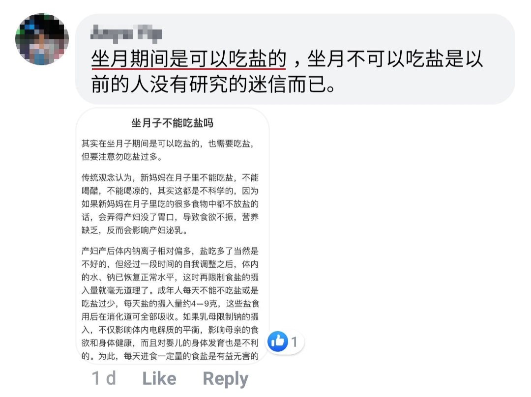 ▼ 有些网友表示坐月子是不能吃盐的,但也有网友说其实可以。