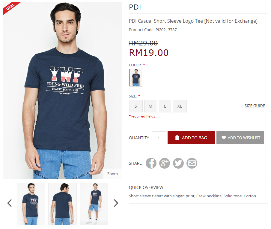 促销地点:PADINI ONLINE STORE 网店【点击这里】