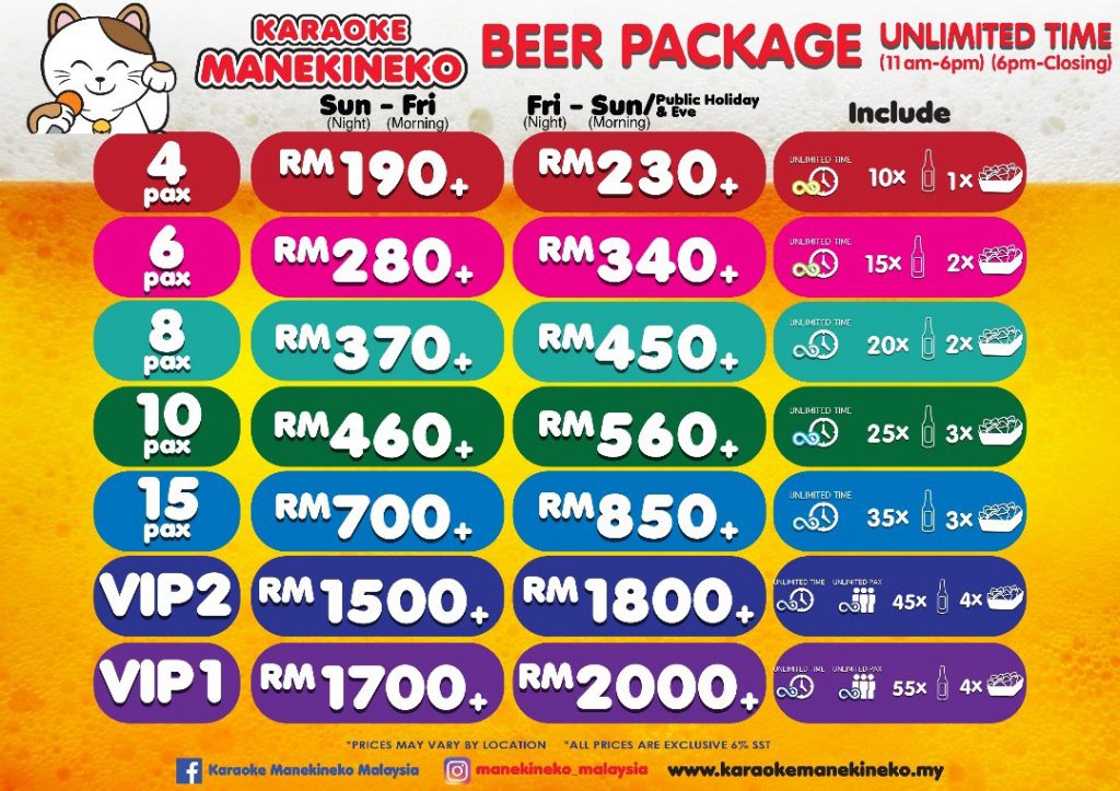 ※啤酒配套最低从4个人起,价格RM190++ (普通天),RM230++ (周末&公共假期)