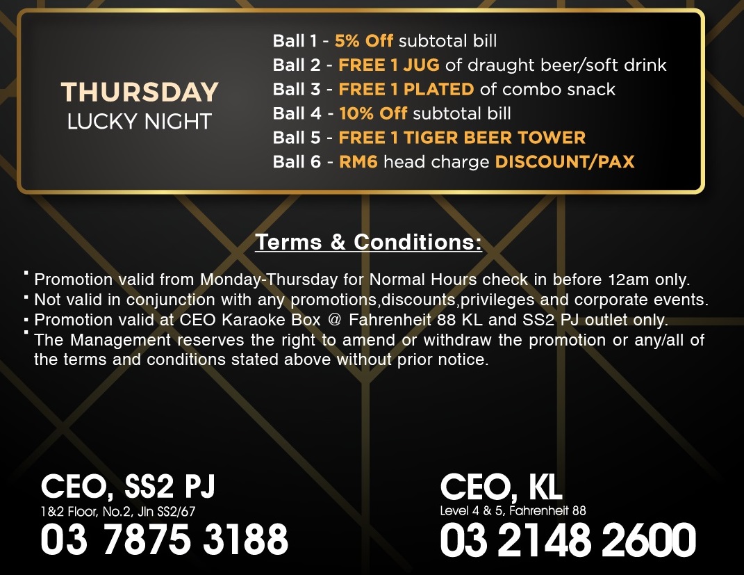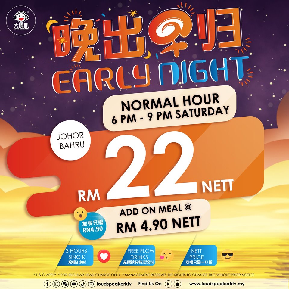 - 星期一至星期四(唱K 2小时只需RM10++)