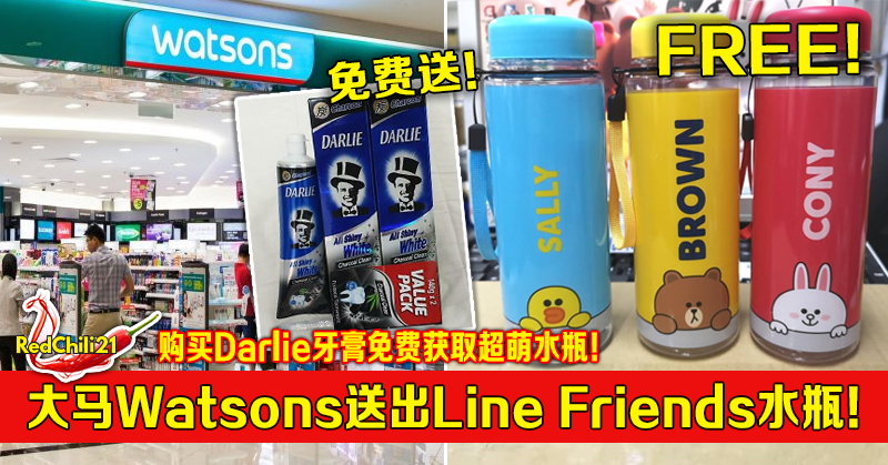 ▼Watsons这里还有买有免费送出Darlie Line Friends超萌水瓶