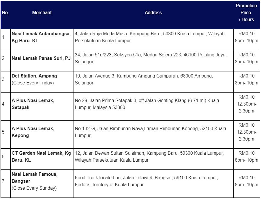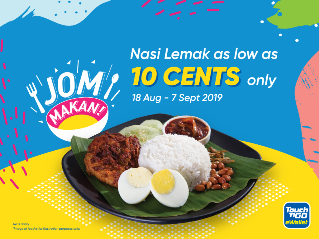 现在Touch ‘n Go电子钱包推出“Jom Makan”活动所以与指定Nasi Lemak档口联手推出RM0.10的Nasi Lemak促销优惠。