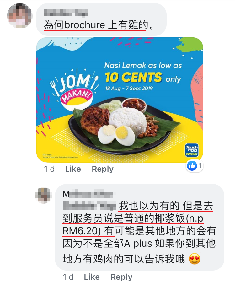 ▼但也有网友注意到了优惠的Nasi Lemak没有鸡肉,和宣传单的照片不符。