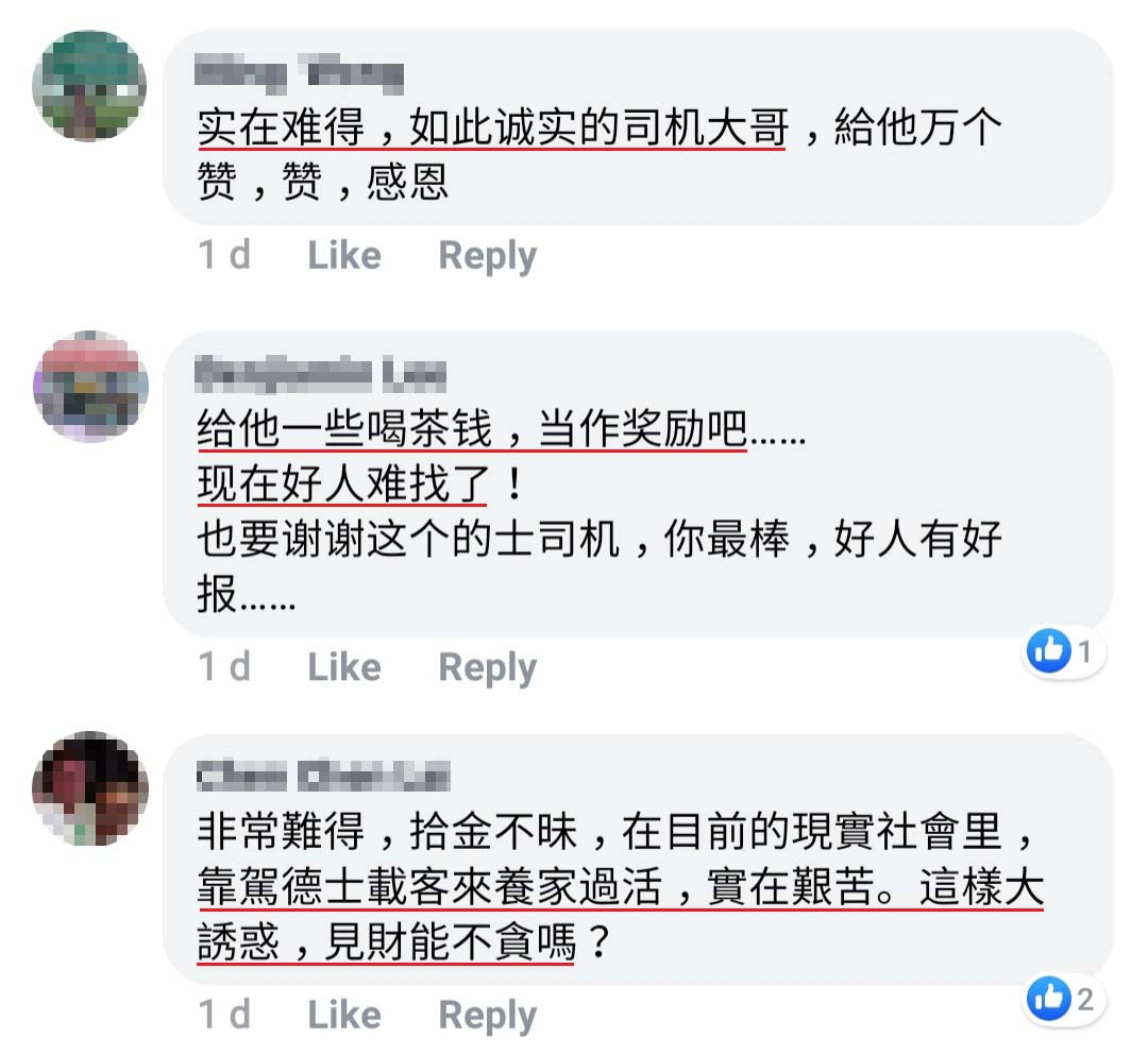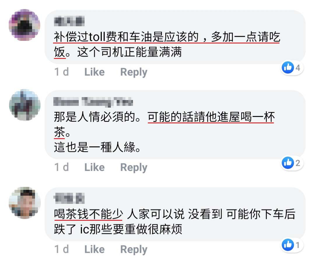原PO十分感动,帖文里的最后,原PO写道他给了这位 Taxi 司机车油费和喝茶钱来作为报答和补偿。