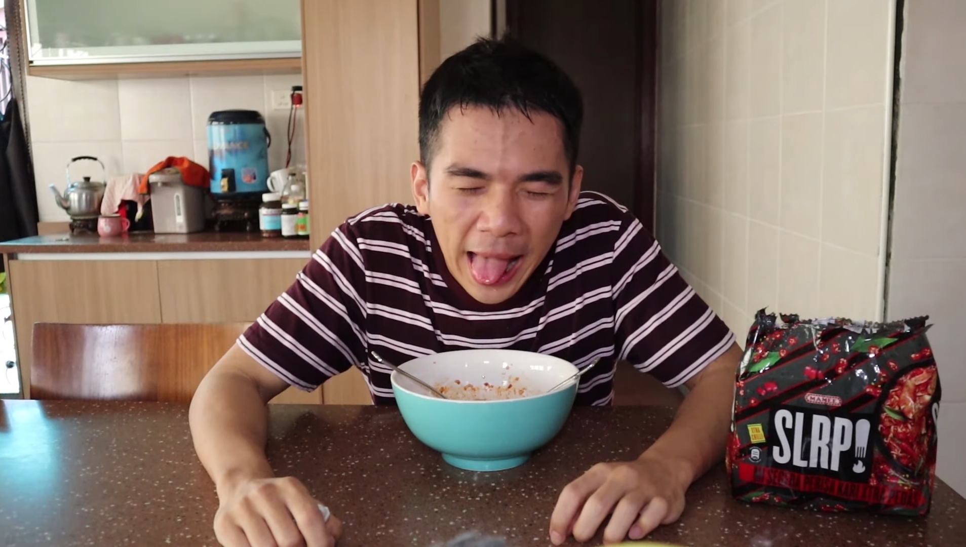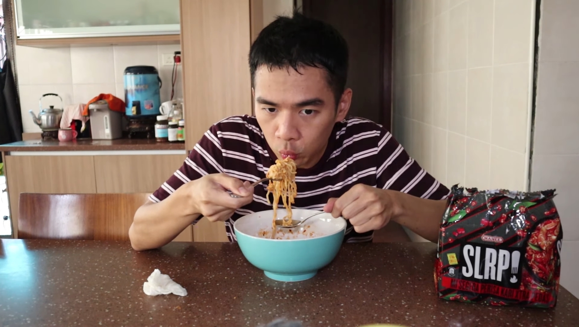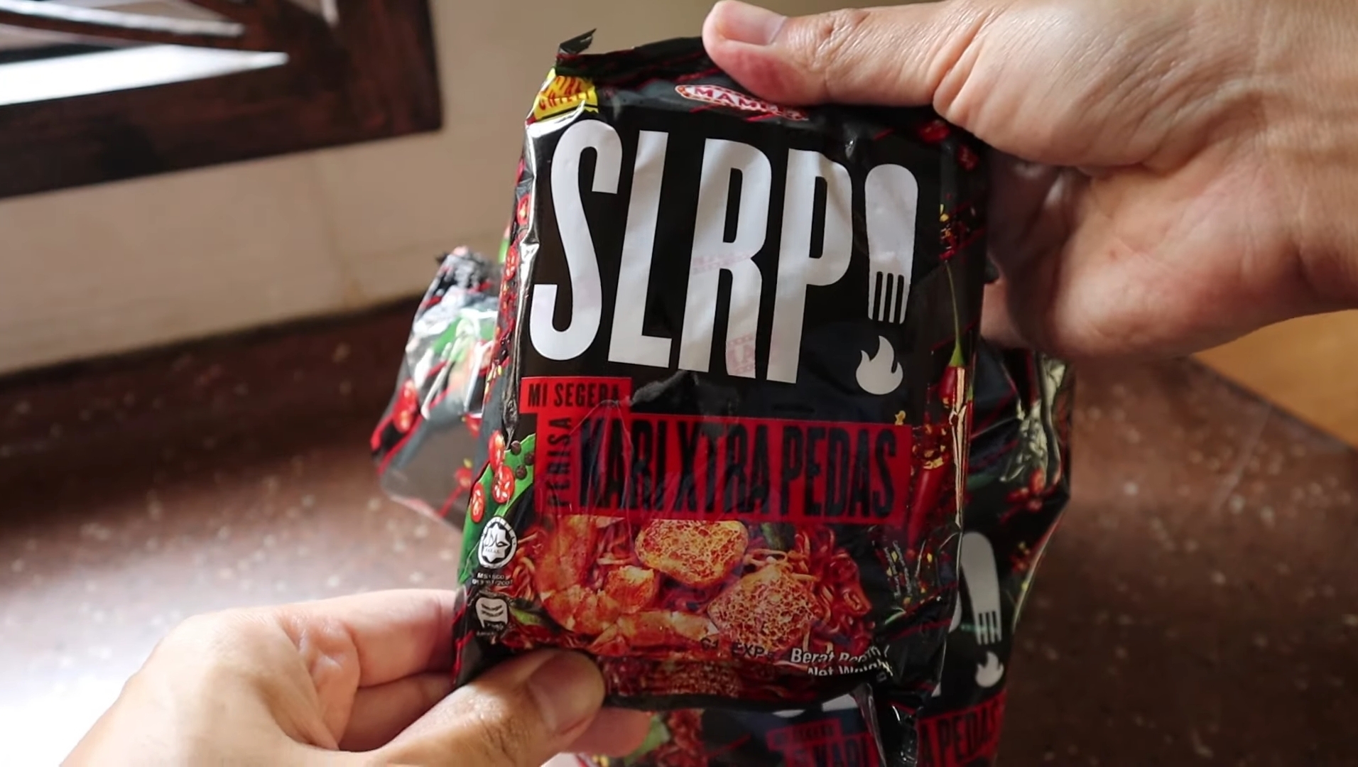 ▼ 一名大马 Youtuber 拍了一段试吃 MAMEE SLRP! 辣面的视频。