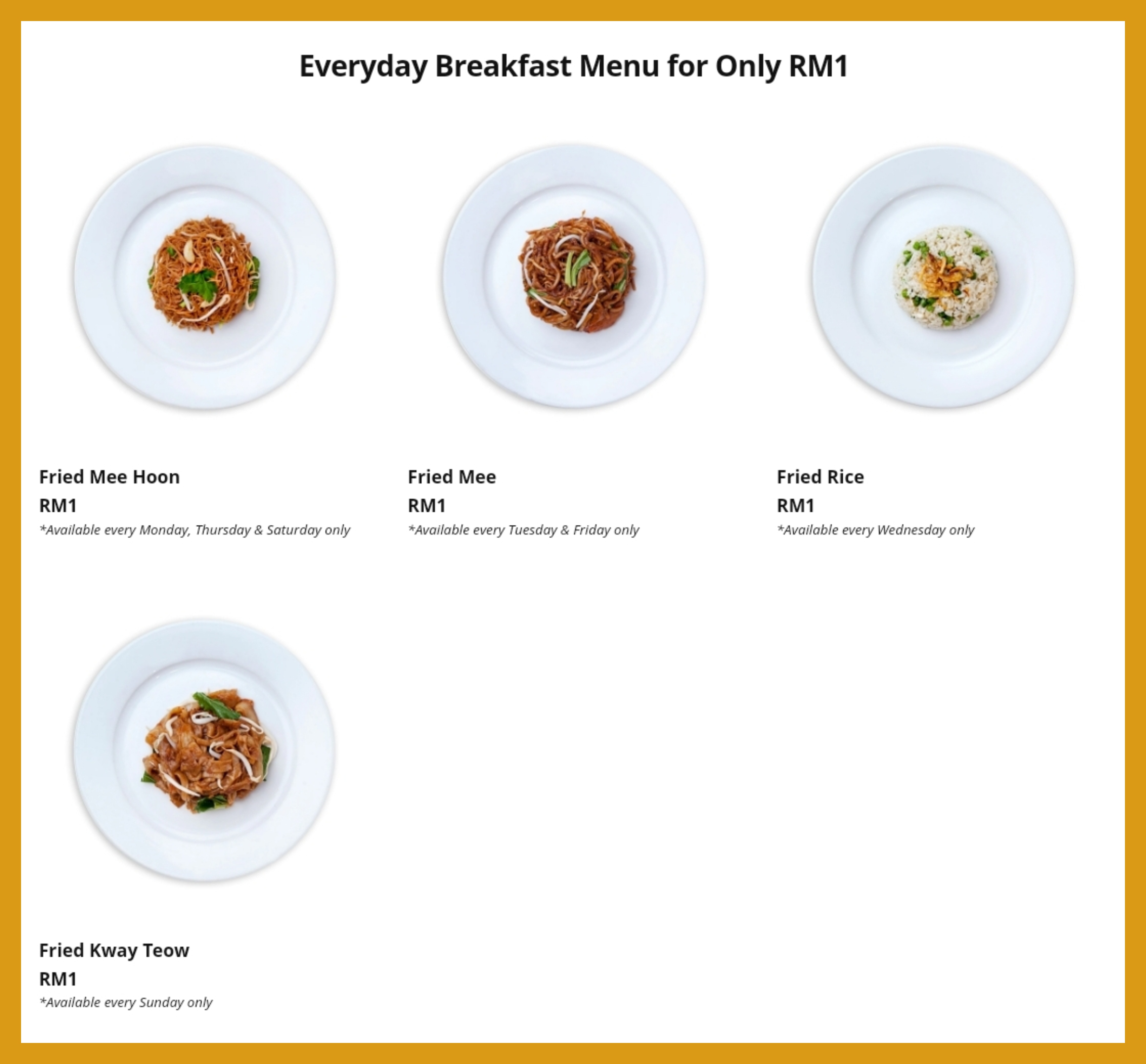 • 炒米粉 – 只限每个星期一、星期四、星期六
