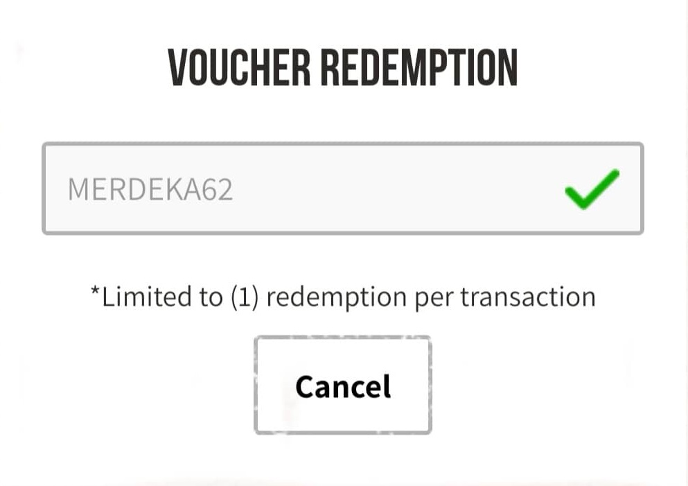 - 此优惠需要填上优惠券的代码【MERDEKA62】才可获得折扣
