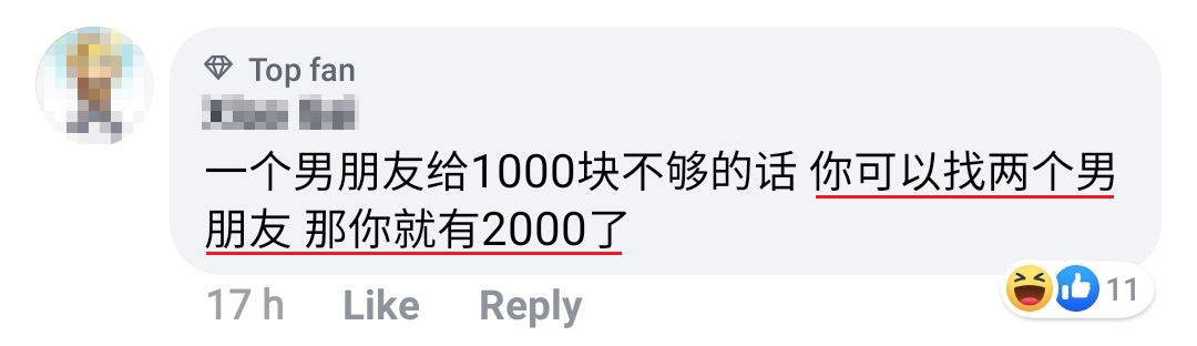 ▼ 不过也有网友认为原PO吹牛,因为会给女友RM1,000零用钱的男友,现在已经没剩几位了。
