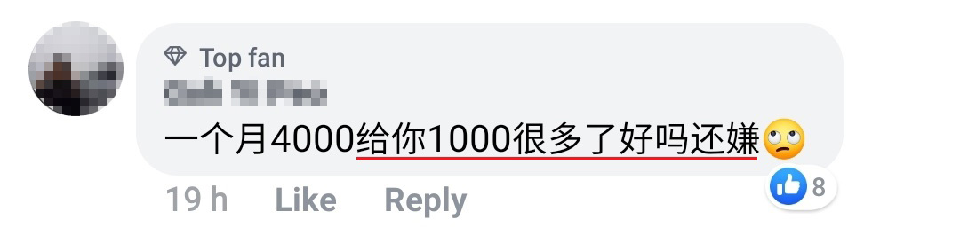 日前,一名大马女生抱怨男友每个月只给她RM1,000的零用钱,反倒被网友们炮轰!