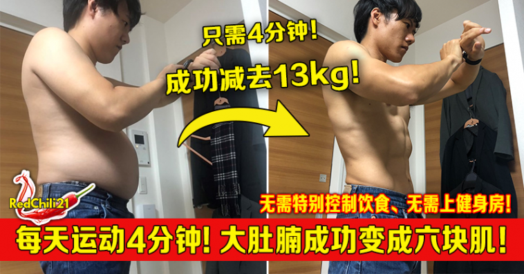 每天运动4分钟!男子大肚腩成功变成六块肌!无需特别控制饮食、无需上健身房!