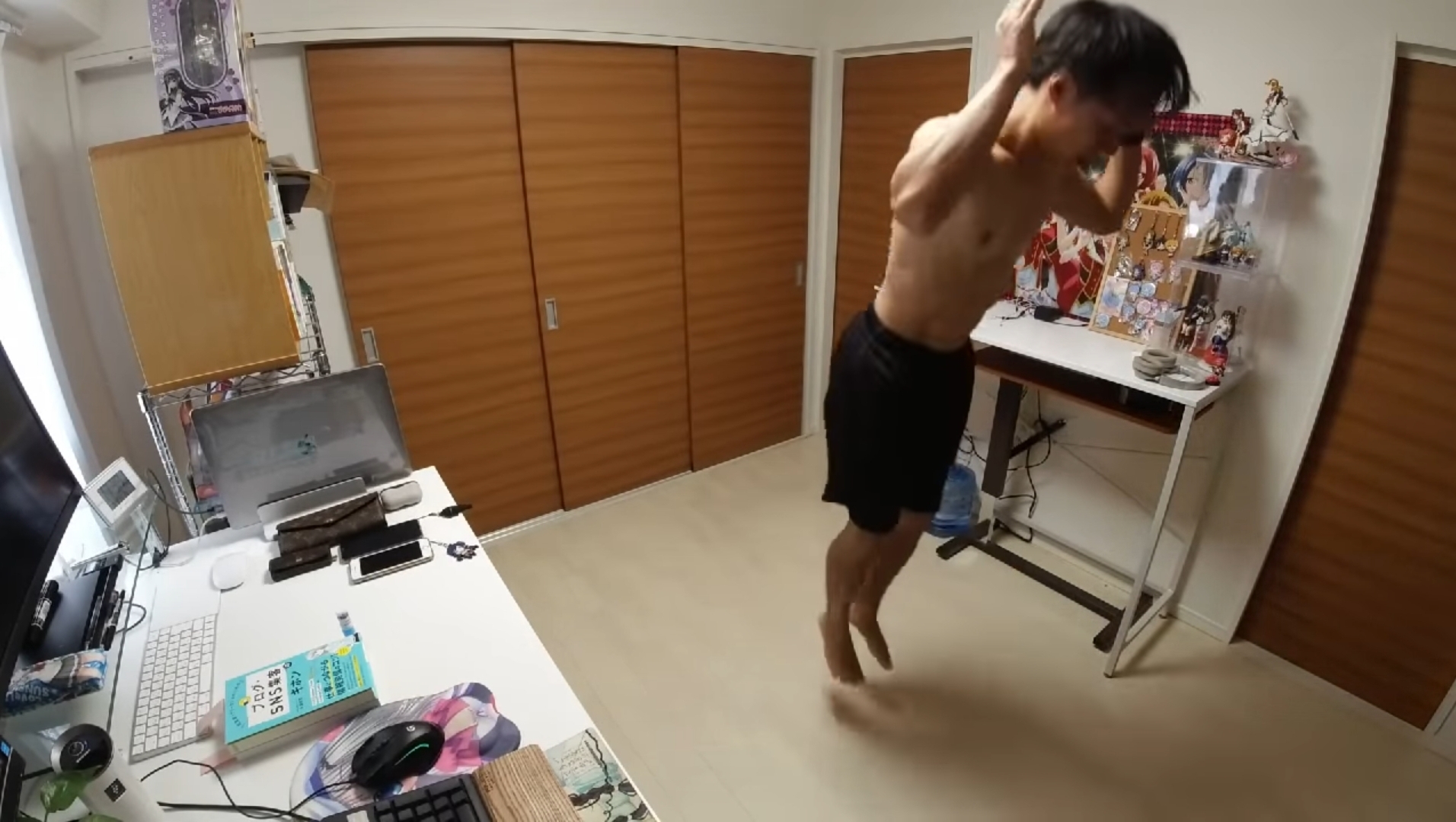 男子也提到,他的运动方式称为「TABATA式训练」。这项「TABATA高强度间歇训练」的方式,需要用尽全力在20秒内完成最大强度的立臥撐跳(Burpee),