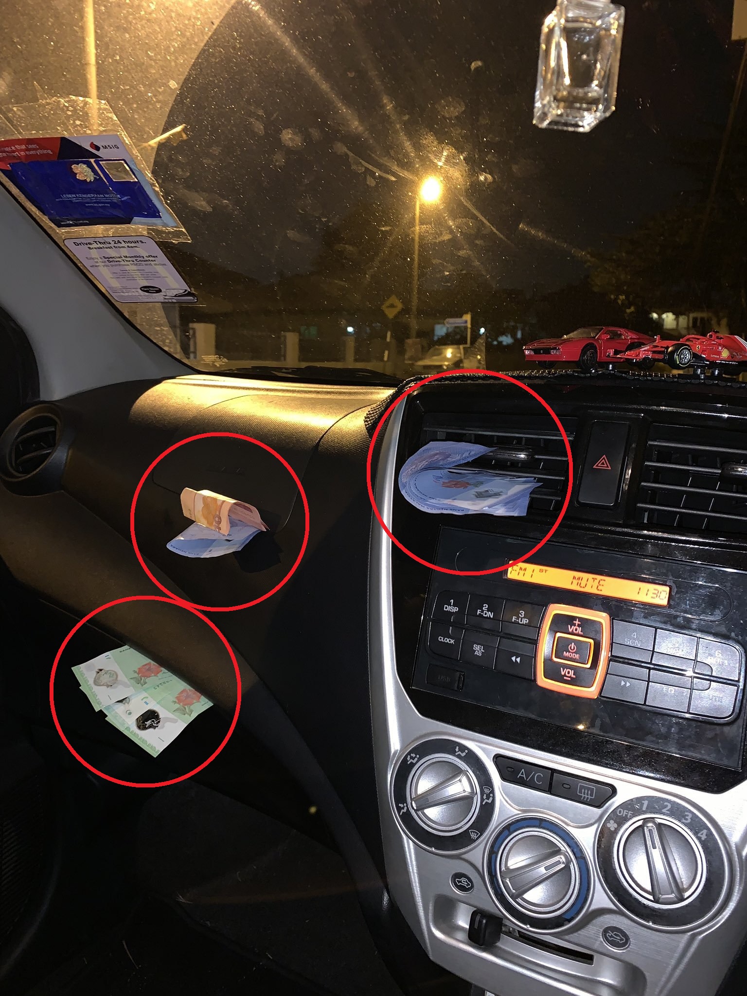 原来故事是这样的,某一天原PO载了一群好友回家,虽然口头上早就把好友们的好意给拒绝了,但是好友们还是很“醒目”的偷偷在他的车上塞了钱,以表达他们的谢意,另一方面是当作补贴。