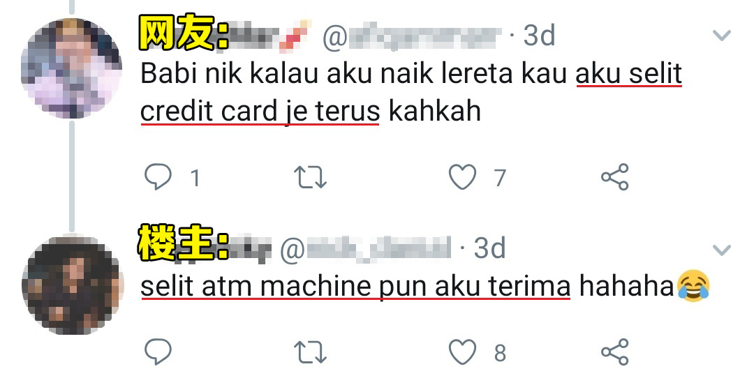 ▼「如果我搭你的车,我会直接塞信用卡!」楼主打趣地回复:「塞提款机,我愿意接受!」