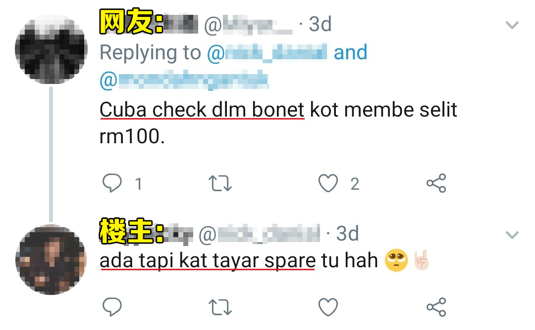 ▼ 此外,也有网友建议原PO检查一下后车厢,楼主回复:「有,但是在备胎里。」