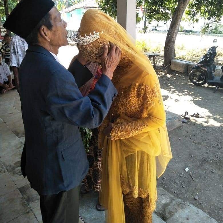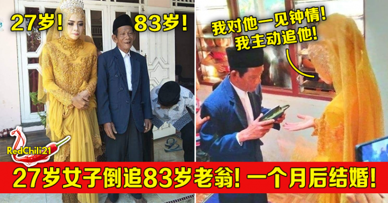 印尼一名27岁女子对83岁老翁一见钟情,女子主动展开追求,并在交往一个多月后就结婚了!