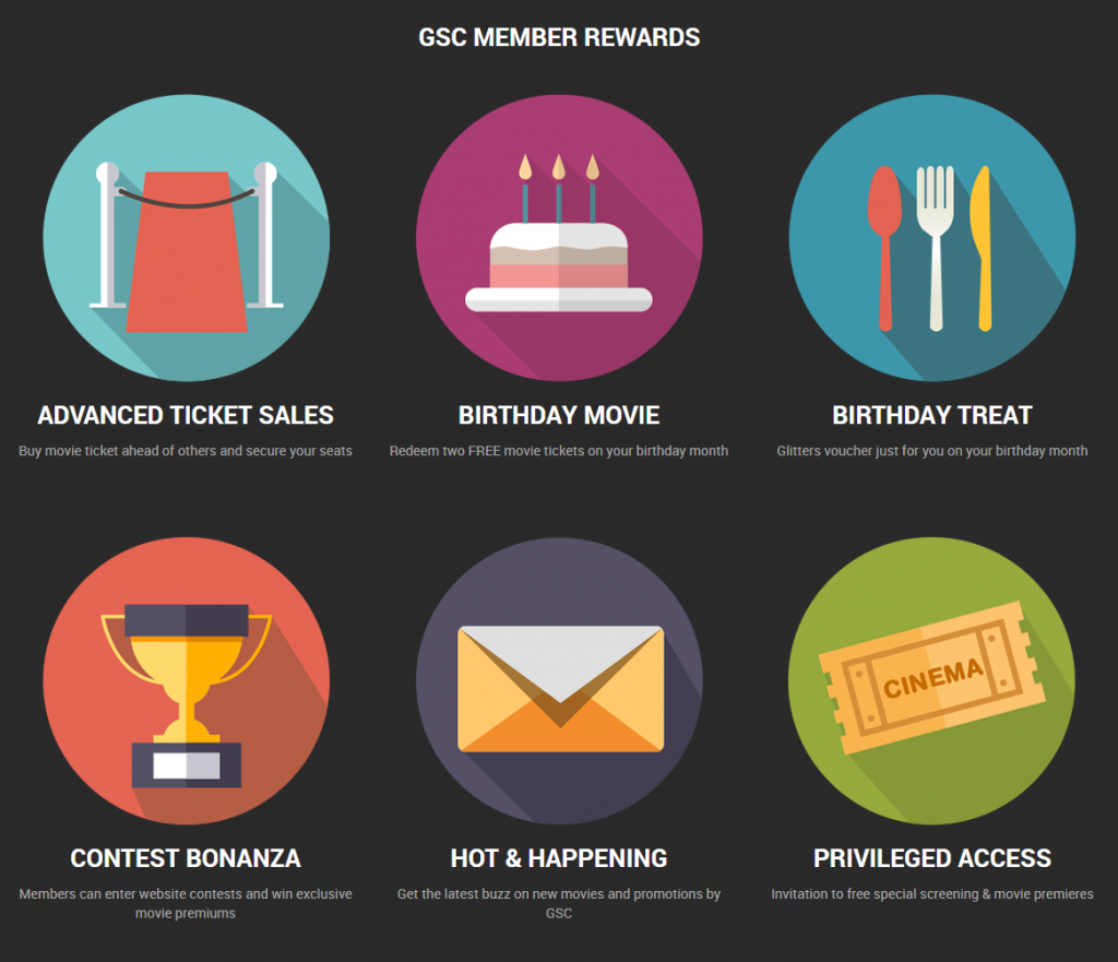 GSC 会员可以在生日的月份获得2张免费电影票。此项优惠只限 GSC Website Members。