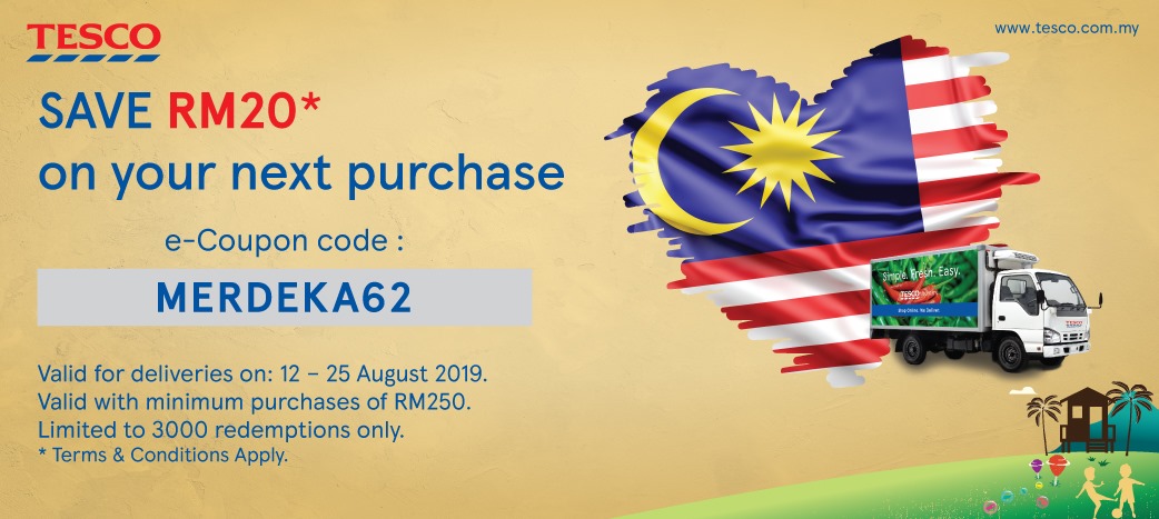 促销活动:Tesco推出e-Coupon折扣RM20(此优惠只限第二次购买才可使用)