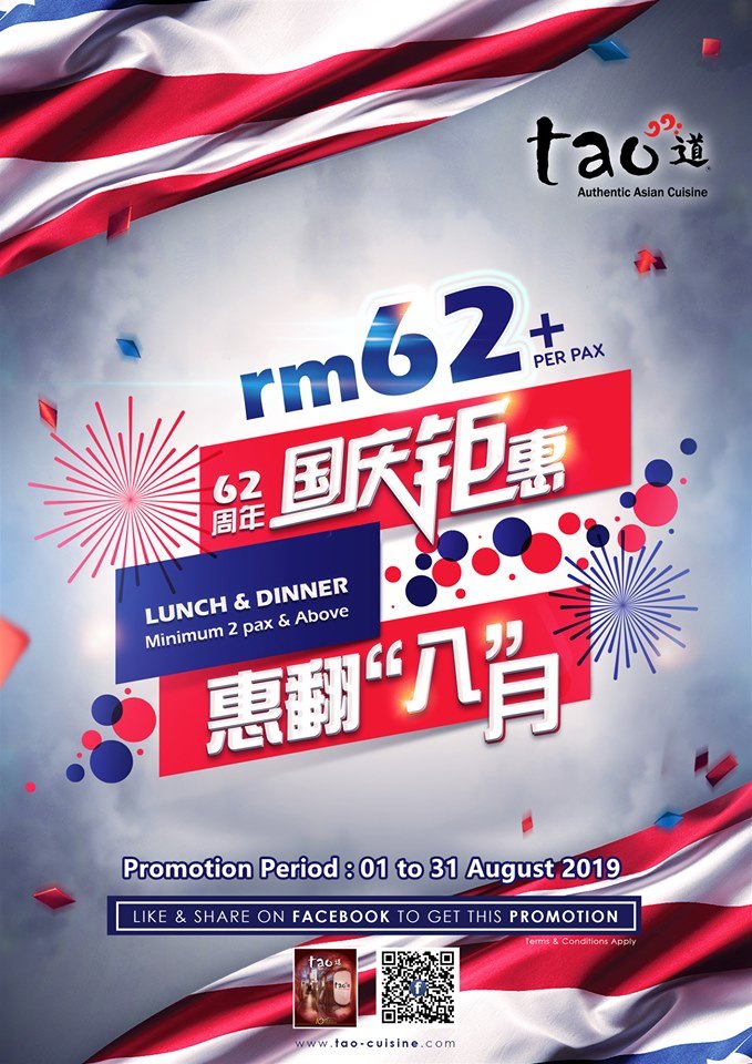 - 此优惠适用于所有的餐点时段,除了公共假期和晚餐前夕。
