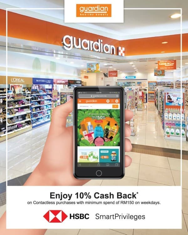 促销活动:每个月在Guardian累积消费RM250及以上将可享有10%回扣。
