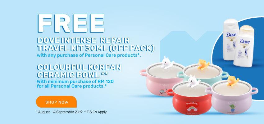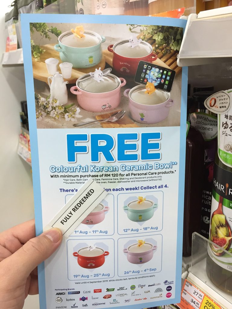 这次只要你购买指定品牌的个人护理用品RM120或以上就能免费获得精美瓷碗。