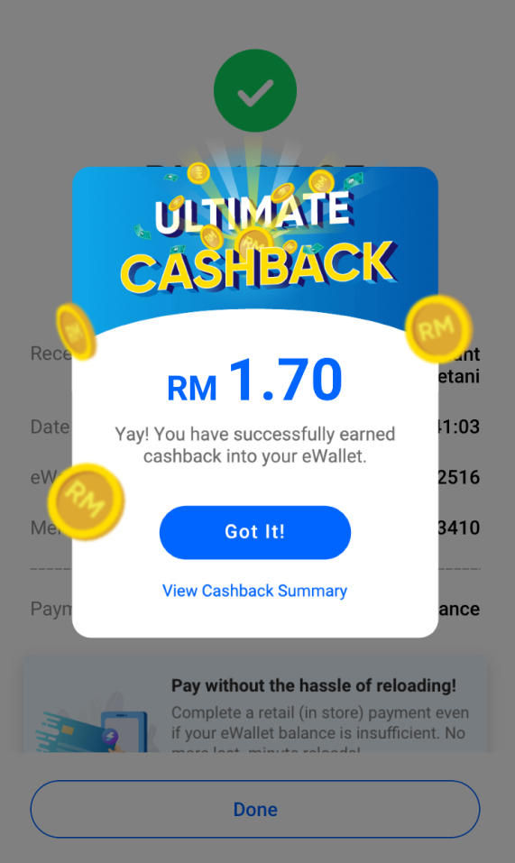 ※而且用户通过Scan,Pay 或“In-app Purchase”的功能将有机会获得最低消费RM5的随机返现。